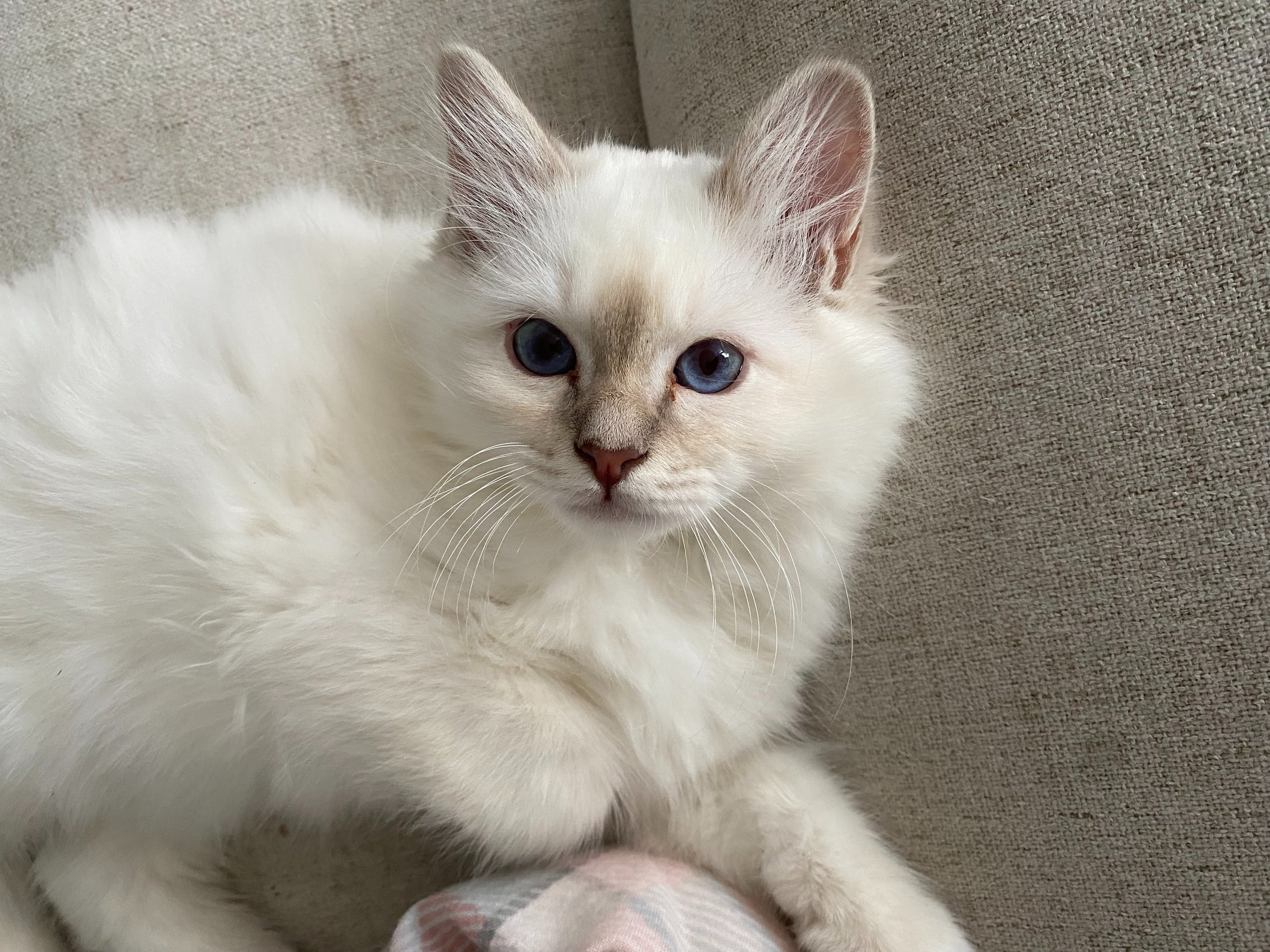 Zu den Birmas kam ich durch einen kleinen Zufall: Eigentlich wollten wir in einem Tierfachgeschäft nach einem Aquarium schauen. Doch dort liefen frei ein paar Katzen umher – und es waren keine gewöhnlichen Katzen, sondern Heilige Birmas. Mit ihren tiefblauen Augen und ihrem sanften Wesen haben sie mich sofort in ihren Bann gezogen. Ich konnte gar nicht anders, als mich intensiv über diese faszinierende Rasse zu informieren.
